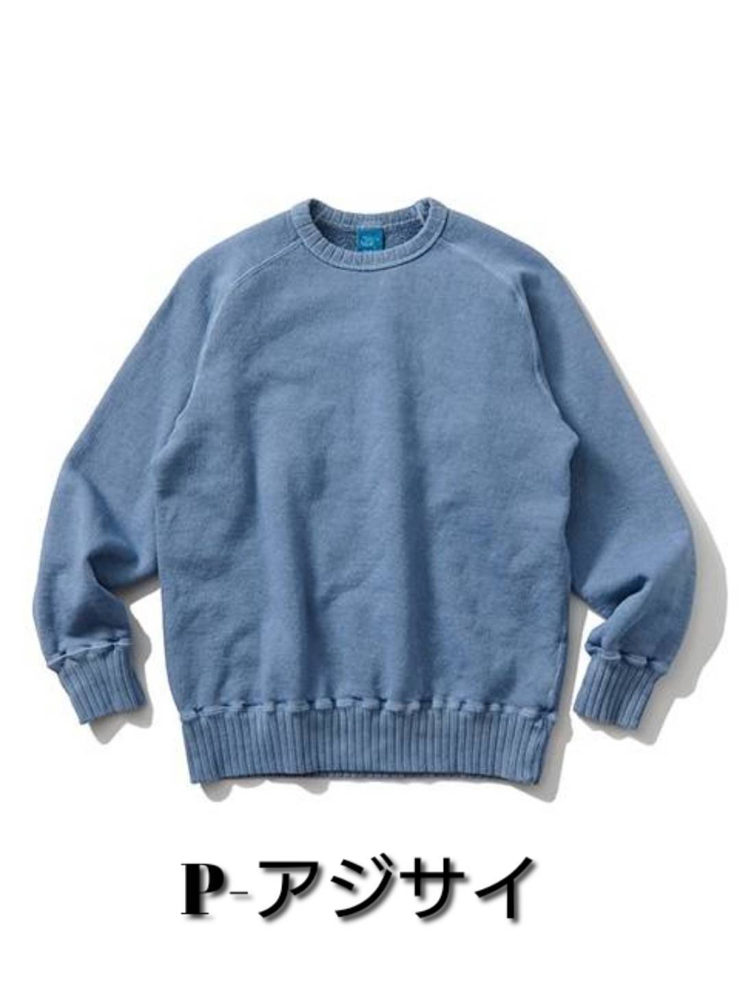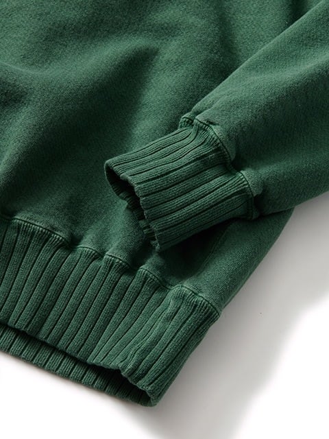 スウェット特有の凹凸に色の濃淡が際立つピグメント染め(顔料染め)カラーは他にはない味のある表情が特徴で、洗濯の度に表面から徐々に色褪せしさらに風合いを増していくので、長く愛用するほどに上質なヴィンテージ品のように印象が変わっていきます。