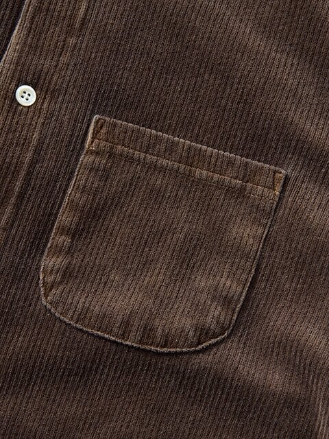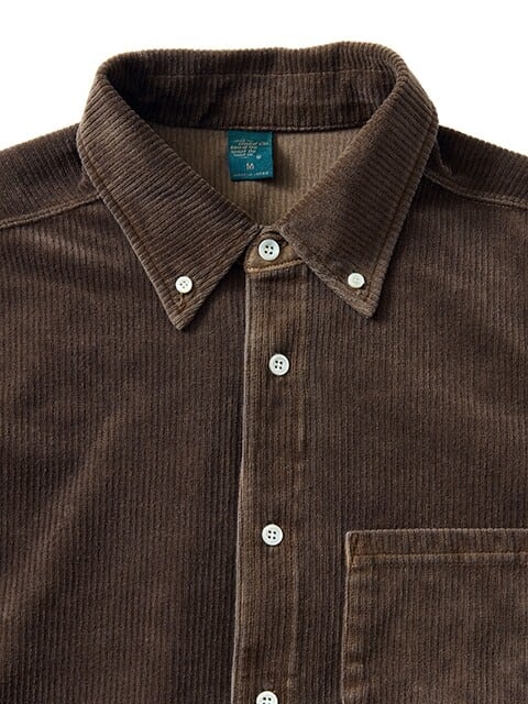 オーガニックコットンを使用したオリジナルファブリック“ニットコーデュロイ”の生地感を生かしたシンプルなボタンダウンシャツ。