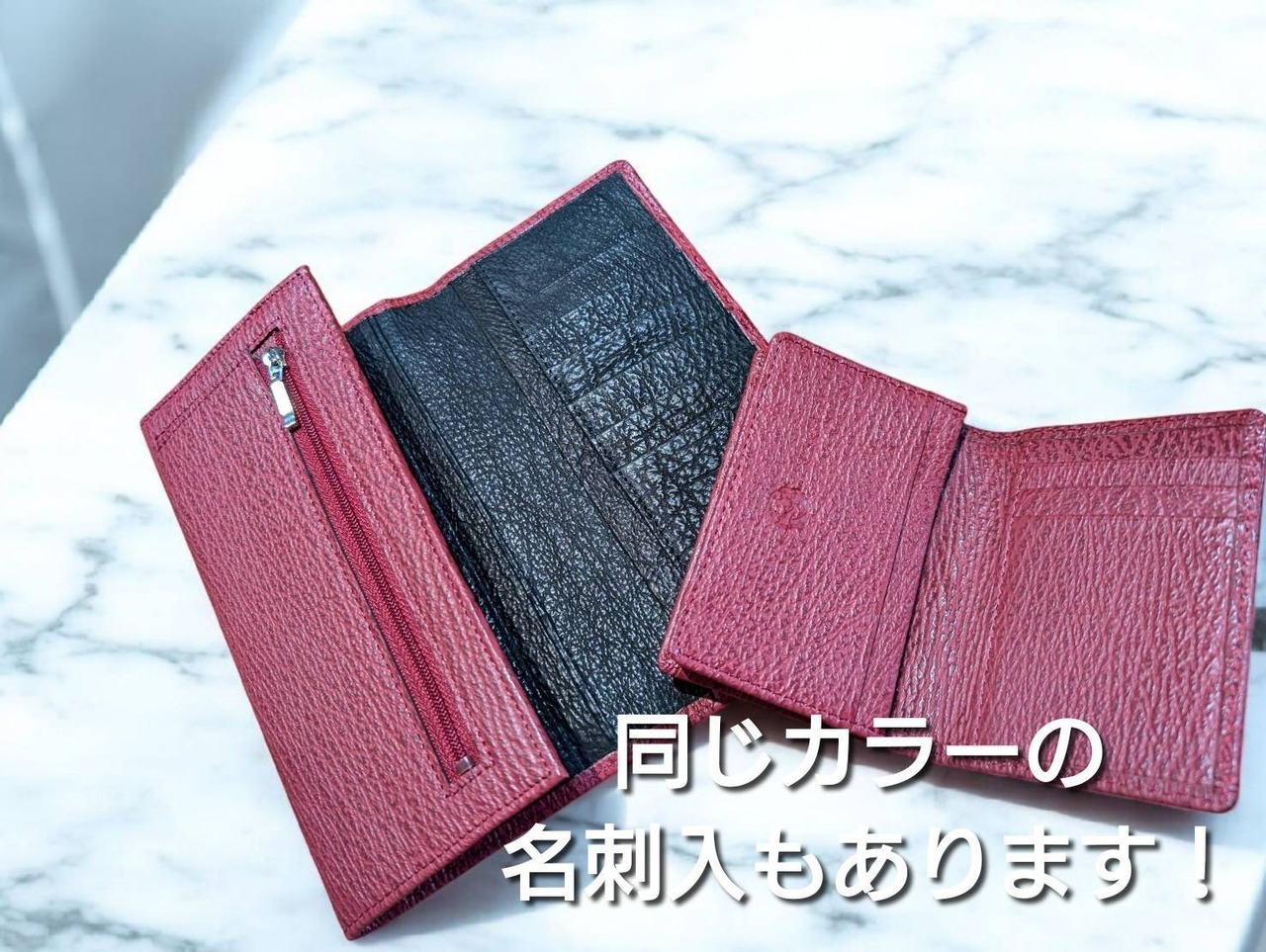 サメ革三つ折り財布です。