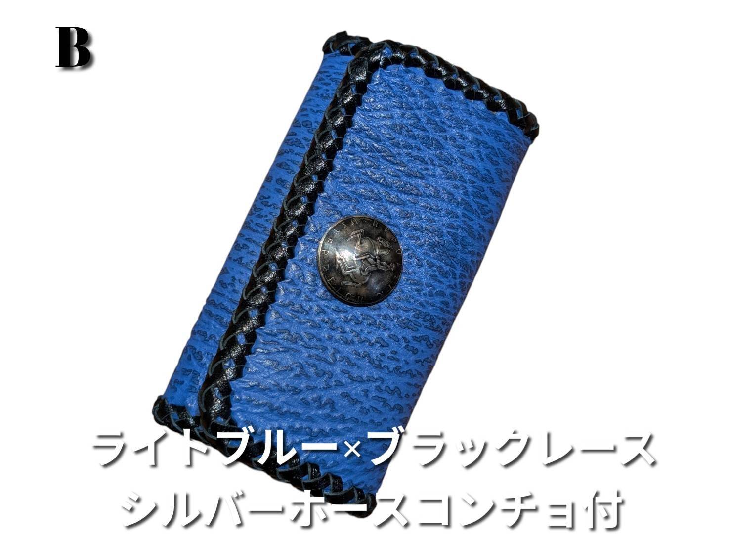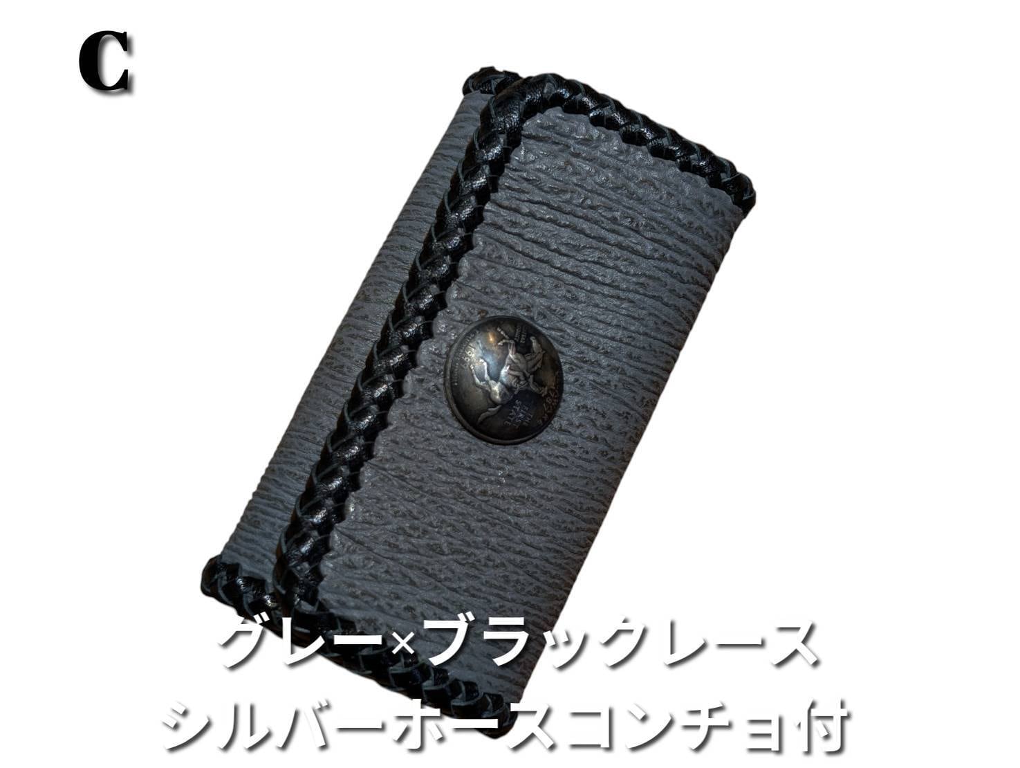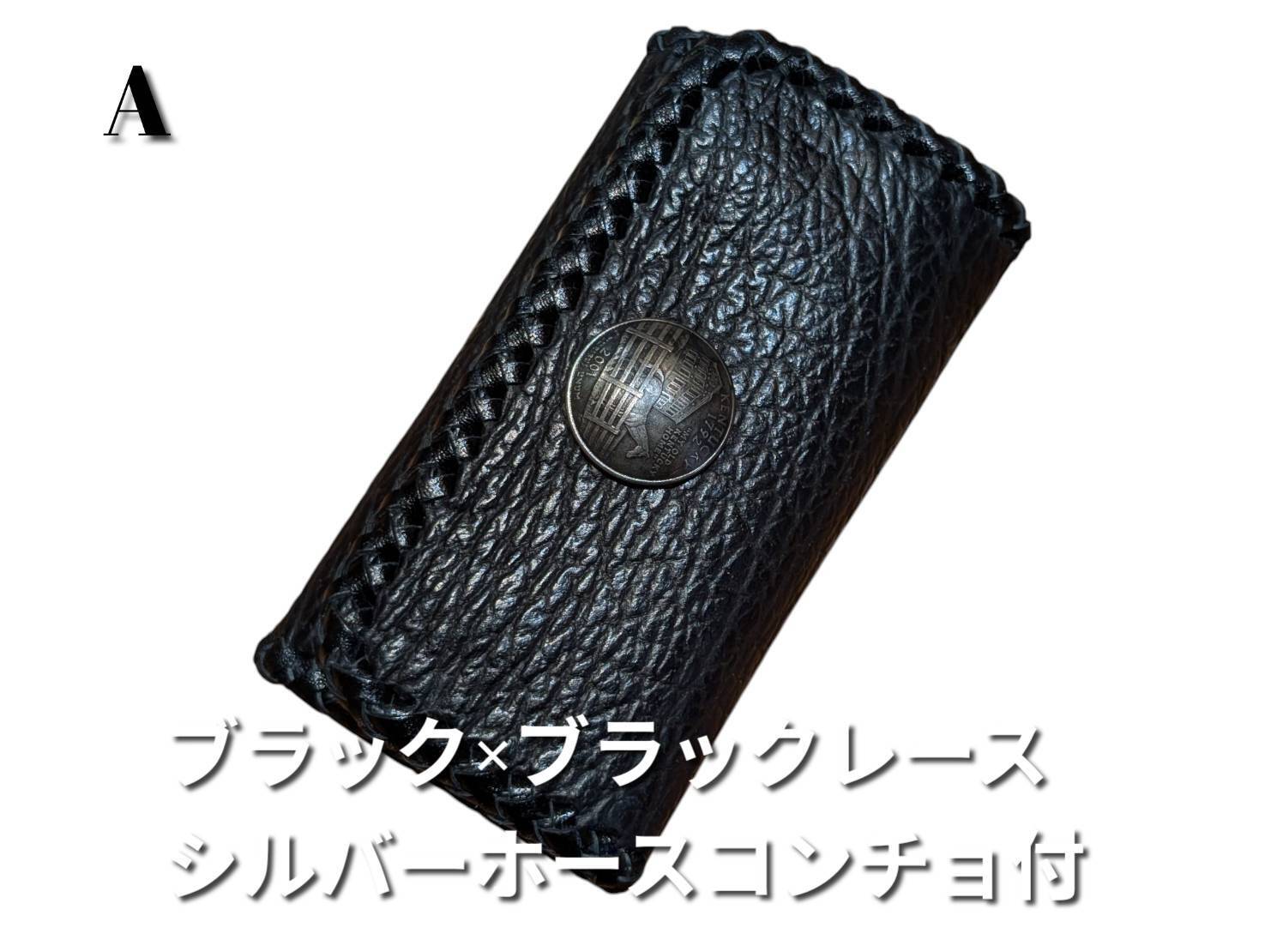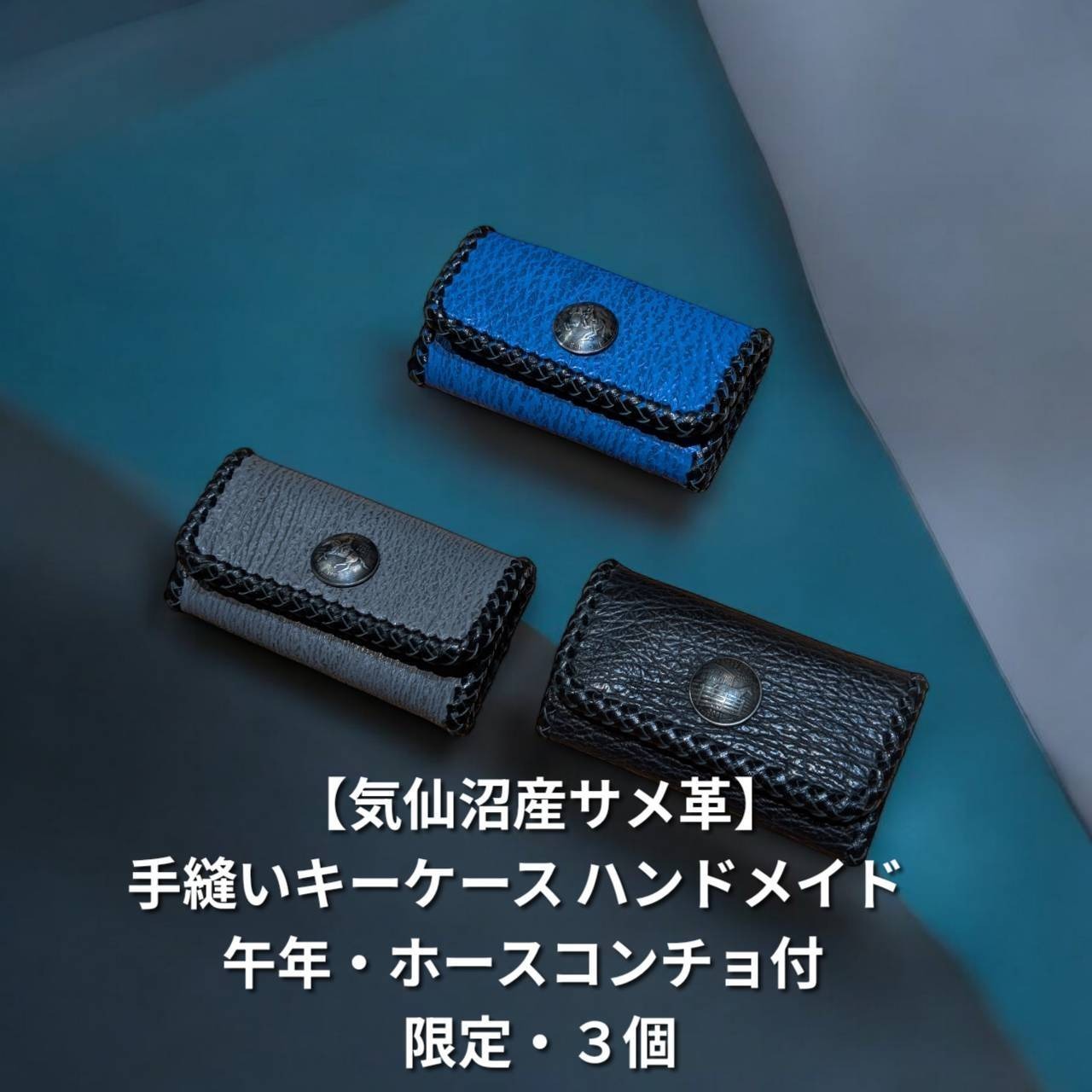 【気仙沼産サメ革】 手縫いキーケース ハンドメイド/午年・ホースコンチョ付 限定3個
