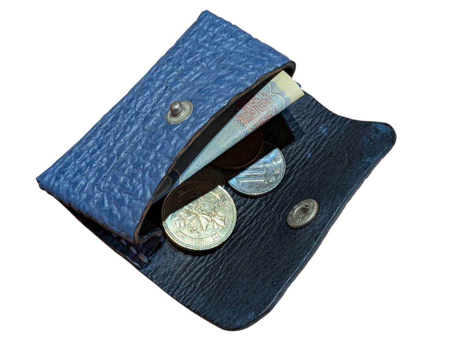 希少な気仙沼産サメ革を使用した、手縫いのサメ革スリムでコンパクトな小銭いれ