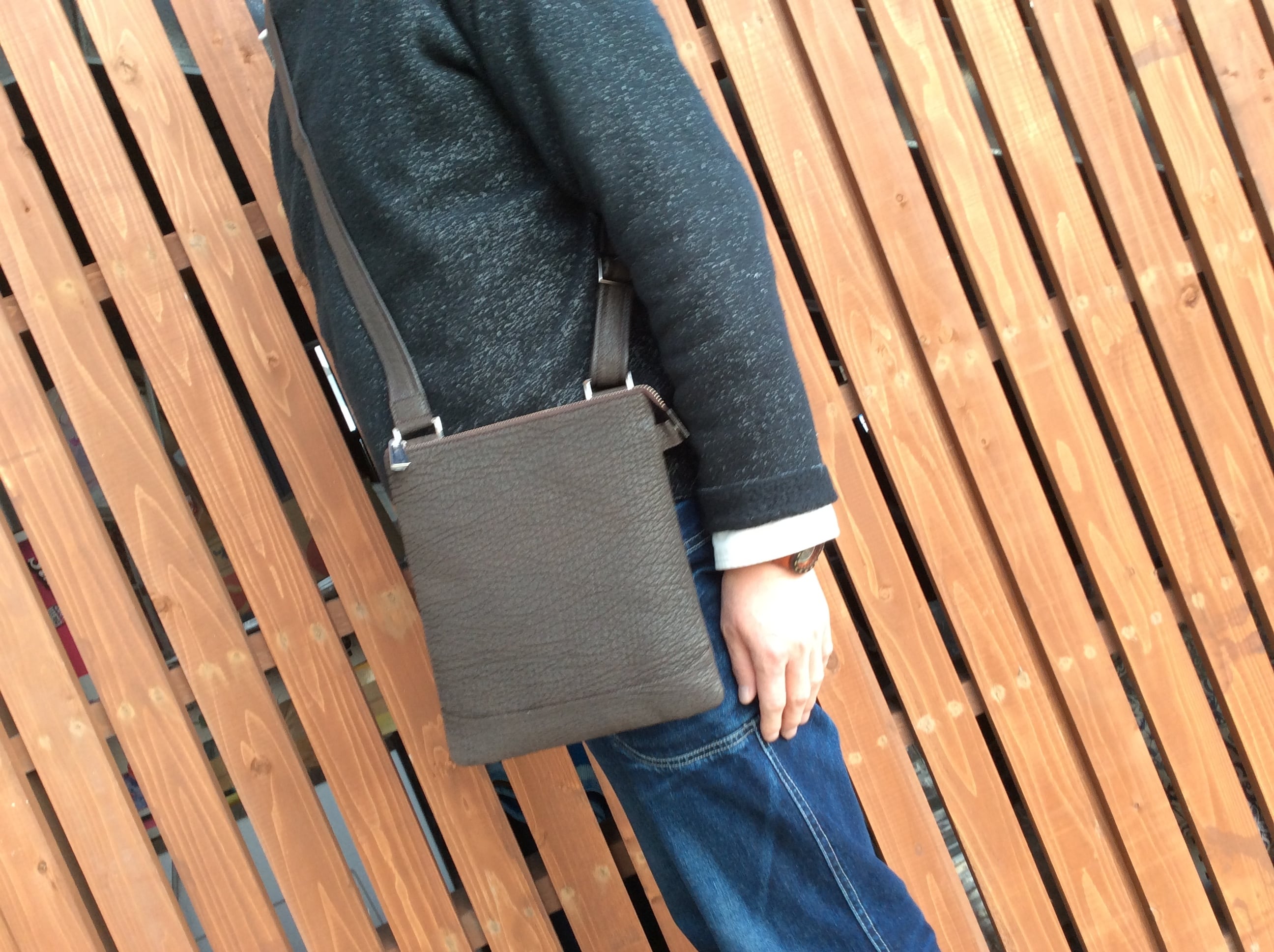 サメ革の魅力あるショルダーバッグを是非お使いいただければと思います。