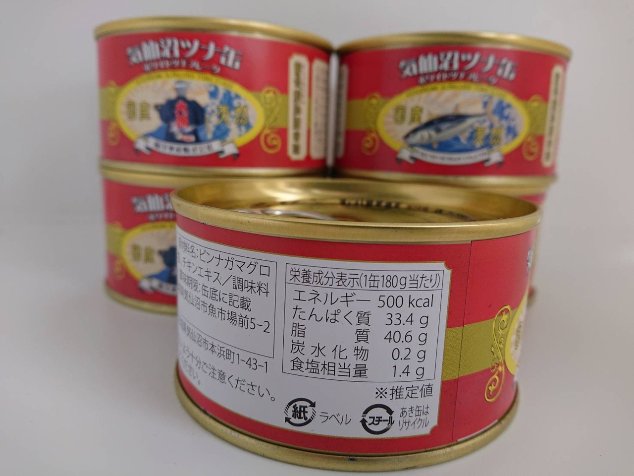 気仙沼のマグロ船所有会社が、気仙沼港に水揚げしたビンナガマグロで作ったツナ缶です。