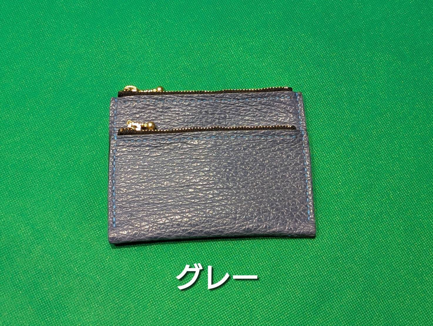 サメ革一枚仕立てのダブルファスナー小物入れです。